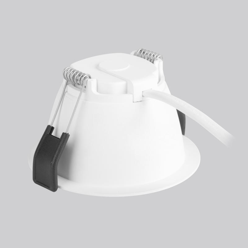 Recessed LED downlight rated IP23 for interior installations. Warm white 5.4W LED light source. Driver included. Excellent light quality with colour rendering over 90 and glare control lower than 6.