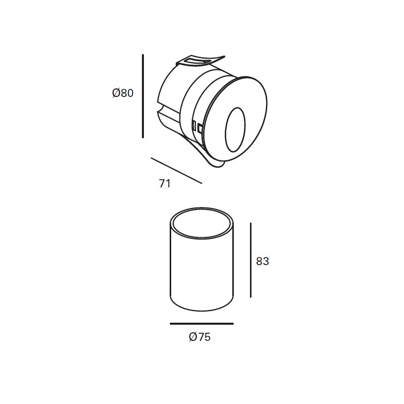 - Diameter 80mm Depth 71mm. Mounting box Diameter 75 Depth 81mm